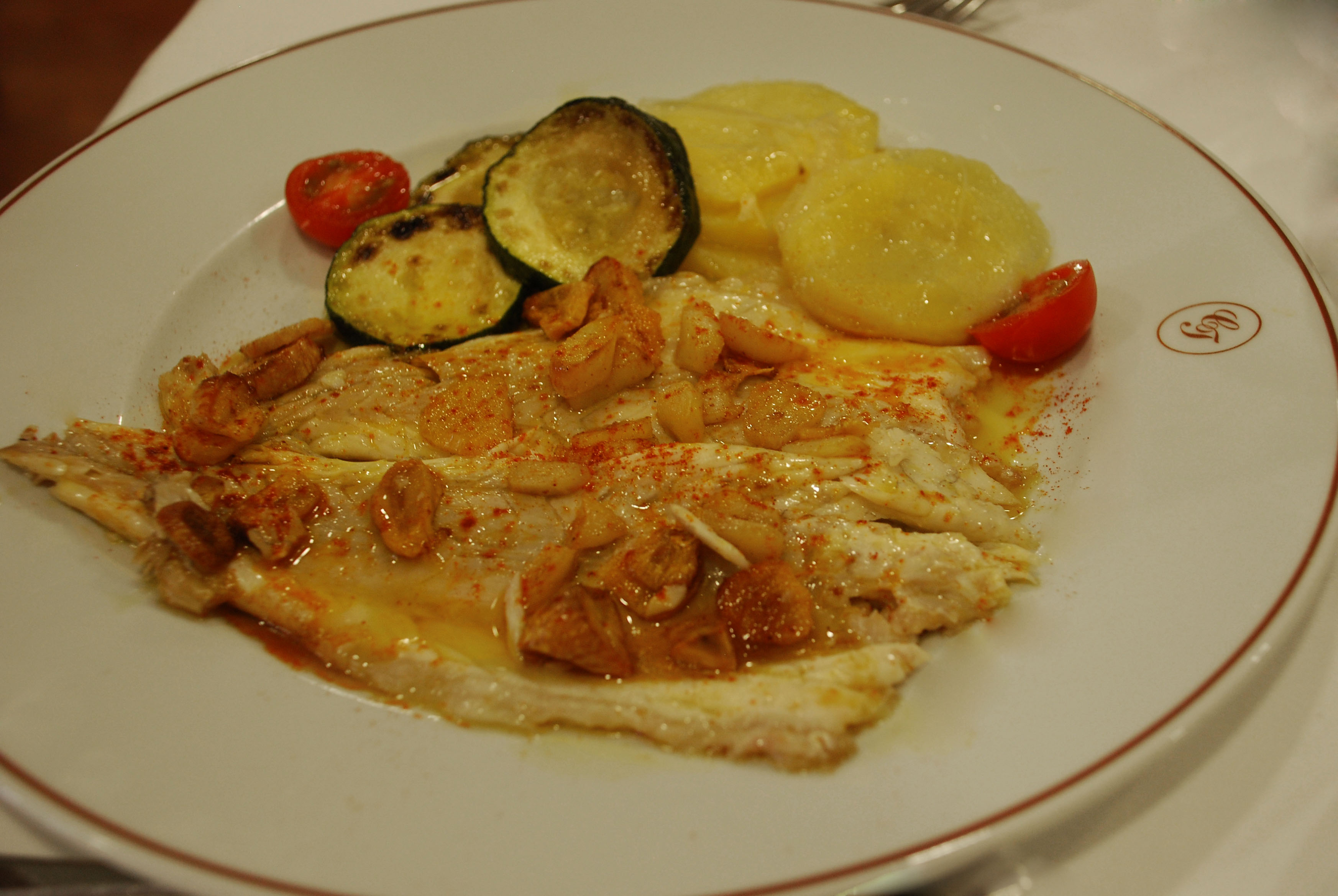 Probamos una lubina al Ajoarriero (preparada al horno con ajos y pimentón de la Vera), la cual estaba exquisita, muy jugosa y sobre todo sabrosísima. El ajo y el pimentón resaltaban el sabor del pescado, sin restarle importancia o enmascararlo. También cabe destacar que es uno de los pocos restaurantes que he visitado donde limpien el pescado delante tuya antes de servírtelo.